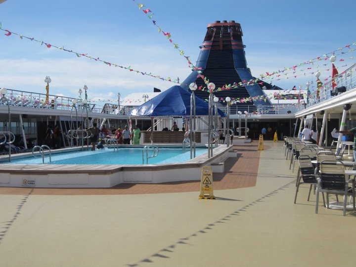 It's a 9 deck cruise with Swimming pool and casino.